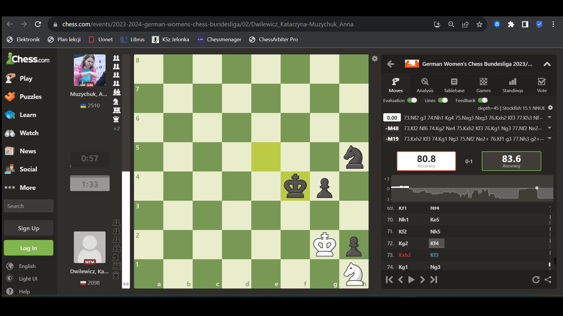 Zapraszamy do zapoznania się z partią: Katarzyna Dwilewicz (2098) vs Anna Muzychuk (2510)