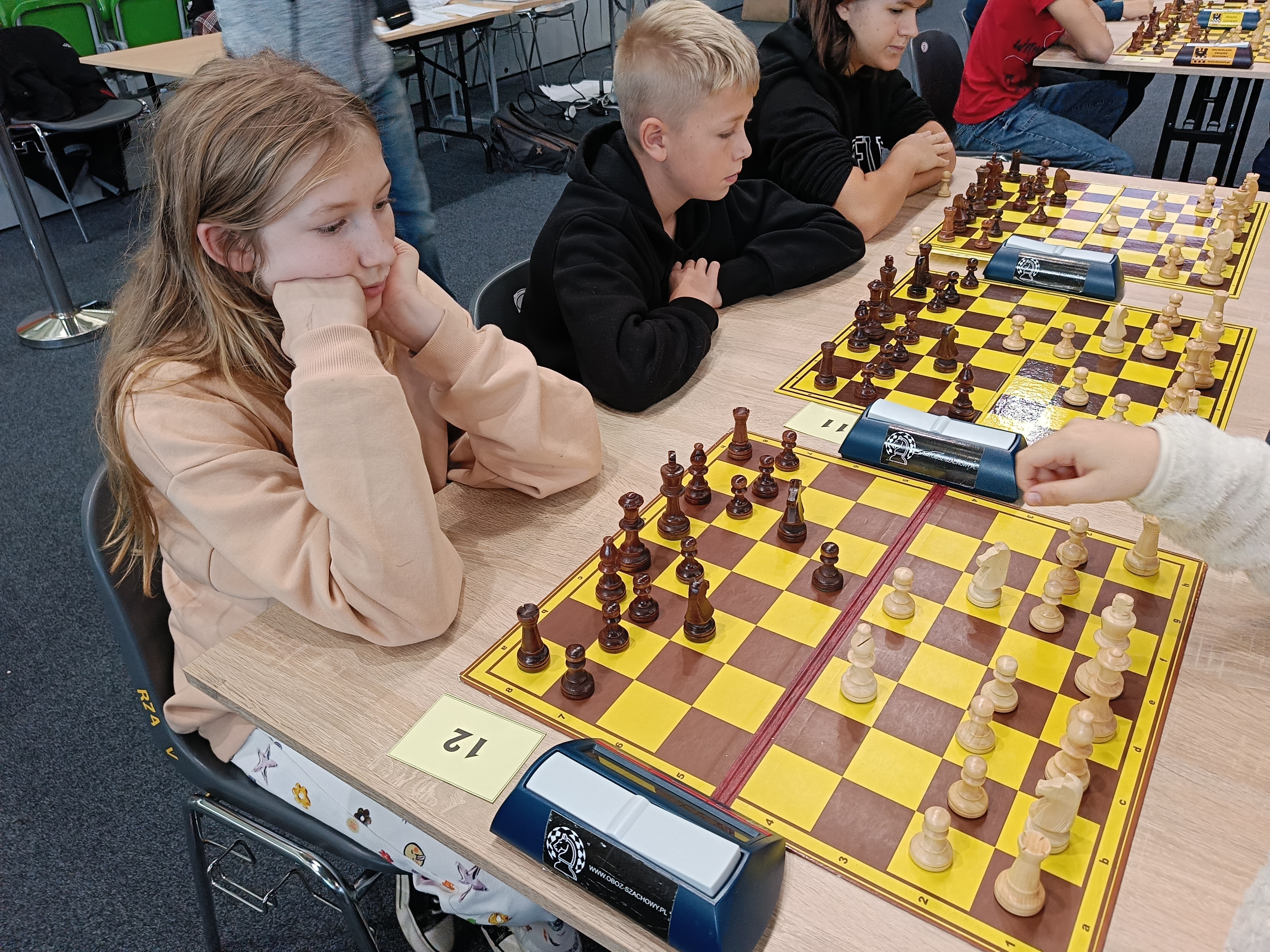 W kategorii klas 5-8 szkoły podstawowej (grupa D) startowało łącznie 99 chłopców i dziewcząt. Turniej rozgrywany był w formule szachów szybkich na dystansie 6 rund tempem 15 min. na zawodnika. Reprezentantki naszego klubu zajęły bardzo wysokie miejsca. Oliwia Cudyk gromadząc 5 pkt. zajęła II miejsce wśród dziewcząt tuż za utytułowaną Hanną Owczarek z Polonii Wrocław (również 5 pkt.). Tuż za podium uplasowały się Weronika Sękiewicz (IV miejsce) oraz Katarzyna Tkacz (V miejsce).