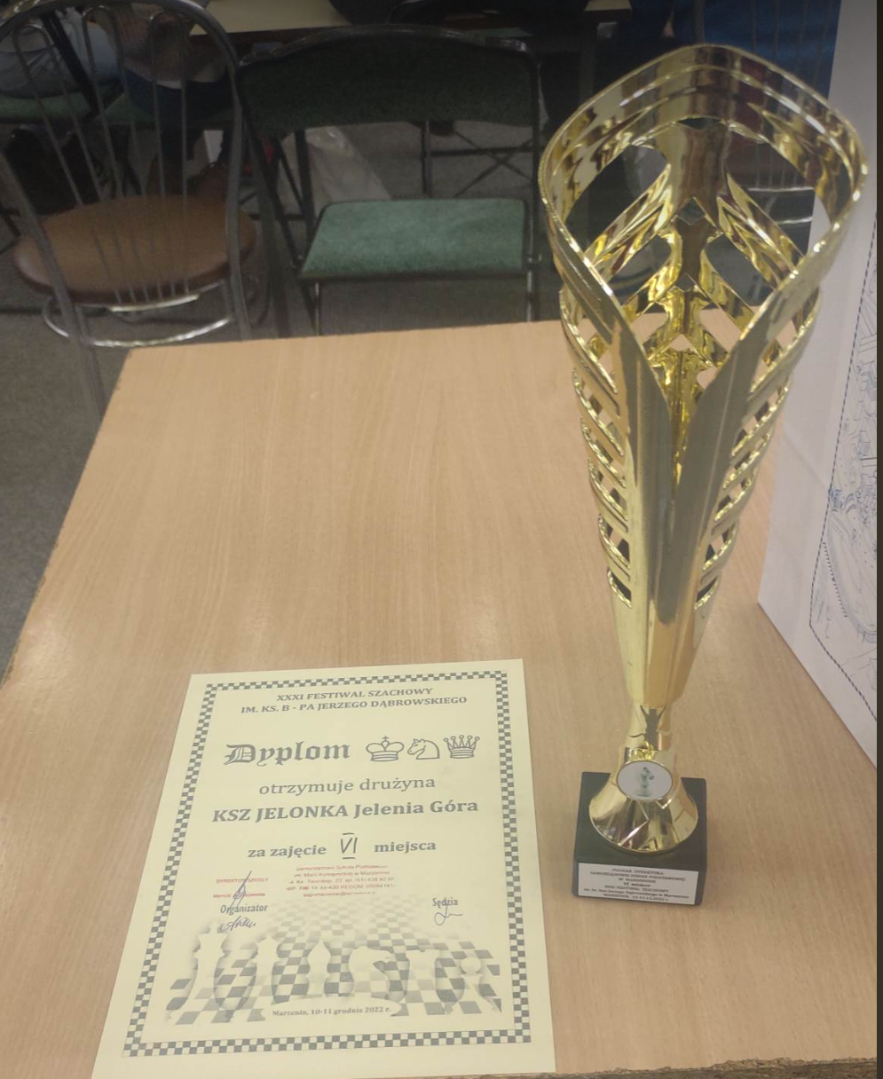 Klub Szachowy Jelonka zdobył Puchar za zajęcie VI miejsca w klasyfikacji drużynowej.