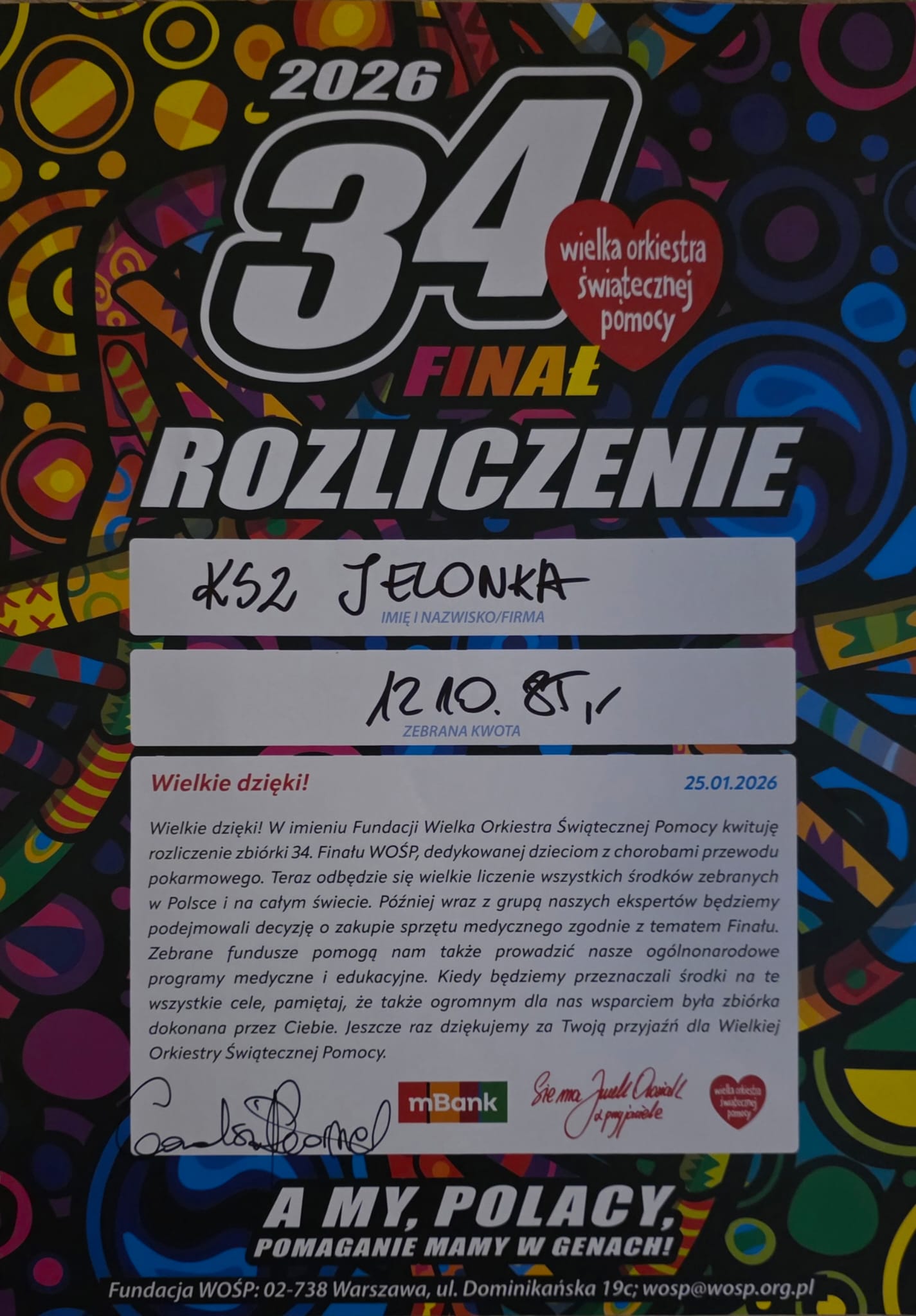 Wszystkim uczestnikom serdecznie dziękujemy za wsparcie WOŚP.
