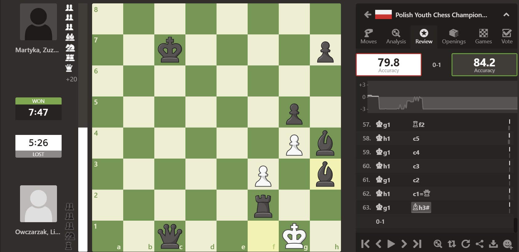 Zuzia w ośmiu rozegranych partiach zgromadziła 3,5pkt i obecnie zajmuje 17 miejsce. Wszystkie partie jeleniogórzanki można śledzić na żywo za pośrednictwem serwisu CHESS.COM
