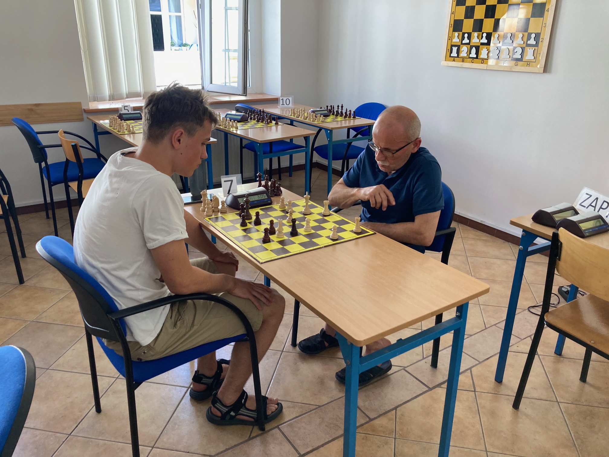 Mimo 26 osób na liście startowej, do pierwszej rundy przystąpiło tylko 15. Trudno powiedzieć co było powodem tak dużej absencji, ale jeśli mielibyśmy typować to ... pogoda. Było bardzo gorąco. Rozegraliśmy 9 rund tempem 5 min+3 sek.