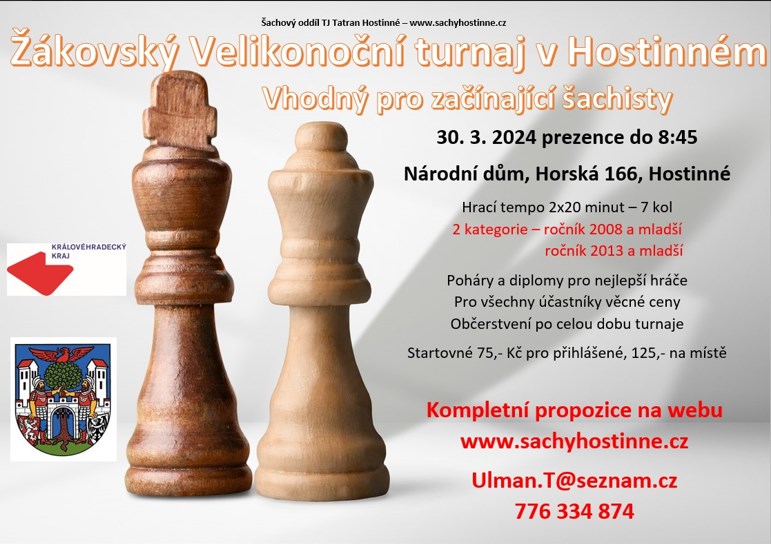 W sobotę 30 marca 2024 r. odbędzie się turniej młodzieżowy, przeznaczony dla początkujących szachistów, w którym w zeszłym roku wzięło udział 55 zawodników w dwóch kategoriach. W niedzielę 31 marca 2024 r. odbędzie się 68. coroczny Memoriał Wielkanocny Františka Šoulavégo. Turniej ten jest już tradycyjnie rozgrywany jako regionalne mistrzostwo KHŠS w szachach błyskawicznych. W tym roku po raz pierwszy turniej zostanie rozegrany w tempie 3 minuty + 2 sekundy na turę.| Carlsen zdobywa 20. tytuł mistrza świata. Assaubayeva po raz trzeci mistrzynią świata w blitzu kobiet Mistrzostwa Świata FIDE w Szachach Błyskawicznych 2025 zakończyły się zwycięstwem GM-a Magnusa Carlsena, który pokonał w finale GM-a Nodirbeka Abdusattorova 2,5–1,5. Oprócz nagrody w wysokości 70 tys. euro Norweg sięgnął po sw&... |